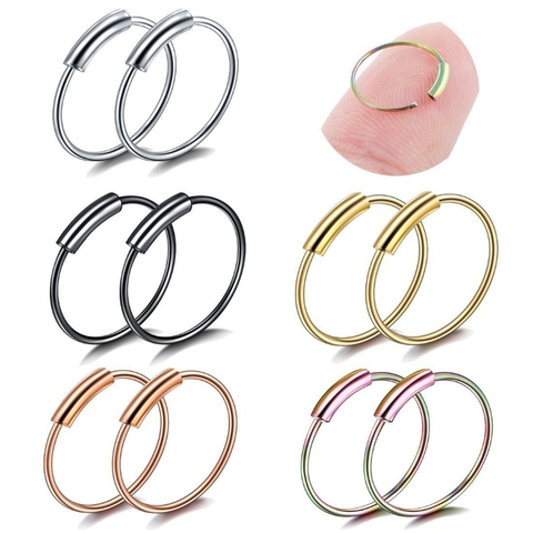 Anillos de Nariz de Acero Inoxidable 16/18/20G, Joyería para Piercing, Anillo Clicker para Septum, Arete de Cartílago, Helix, Rook, Tragus, Daith, 8/10mm