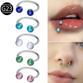 G23 titanio 16G 6/8/10mm ópalo herradura tabique nariz anillos labio ceja hélice Daith oreja Piercing joyería para mujer