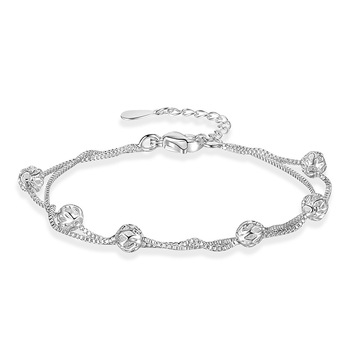 Joyería delicada, cuentas huecas de doble capa ajustables, regalo de joyería, cadena de eslabones, brazalete en capas, pulsera con abalorio para mujeres y niñas